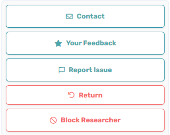 Participants have a host of options including contacting researchers, providing feedback, reporting issues, returning projects, and blocking researchers.
